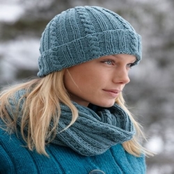 Flätstickad mössa och halsduk