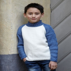 Barntröja med raglan och resårstickad fläta i Freja