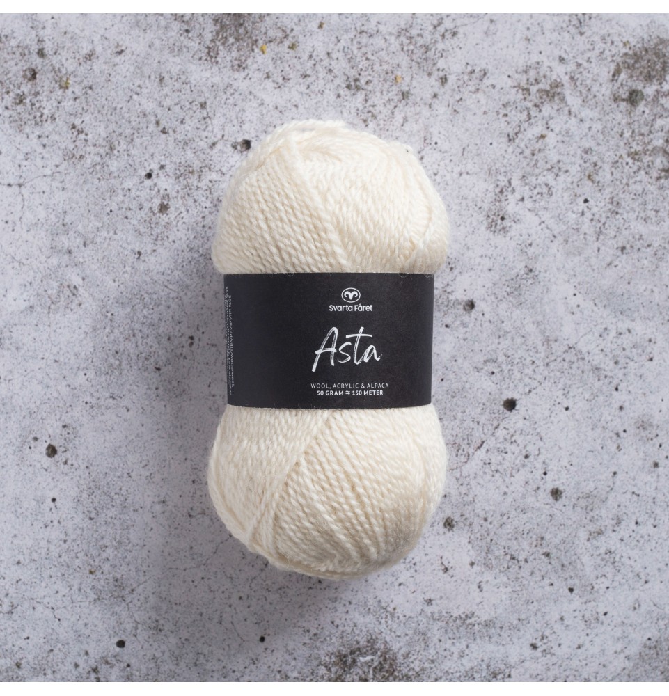 Asta kommer i en ljuvlig blandning av 15% alpacka, 50% ull och 35% akryl. Garnet passar perfekt till värmande accessoarer som sjalar och ponchos, men även koftor och tröjor blir mjuka och sköna i Asta. Garnet är upplagt på 50 grams nystan om 150 meter, och stickfastheten 24 maskor på stickor nr 3.5 ger 10 cm. Plagg som stickas med Asta tvättas i 30 graders skontvätt. Med flera ljuvliga färger att välja bland kan vi nästan lova att du mött en framtida favorit.