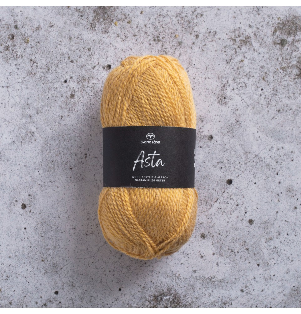Asta kommer i en ljuvlig blandning av 15% alpacka, 50% ull och 35% akryl. Garnet passar perfekt till värmande accessoarer som sjalar och ponchos, men även koftor och tröjor blir mjuka och sköna i Asta. Garnet är upplagt på 50 grams nystan om 150 meter, och stickfastheten 24 maskor på stickor nr 3.5 ger 10 cm. Plagg som stickas med Asta tvättas i 30 graders skontvätt. Med flera ljuvliga färger att välja bland kan vi nästan lova att du mött en framtida favorit.