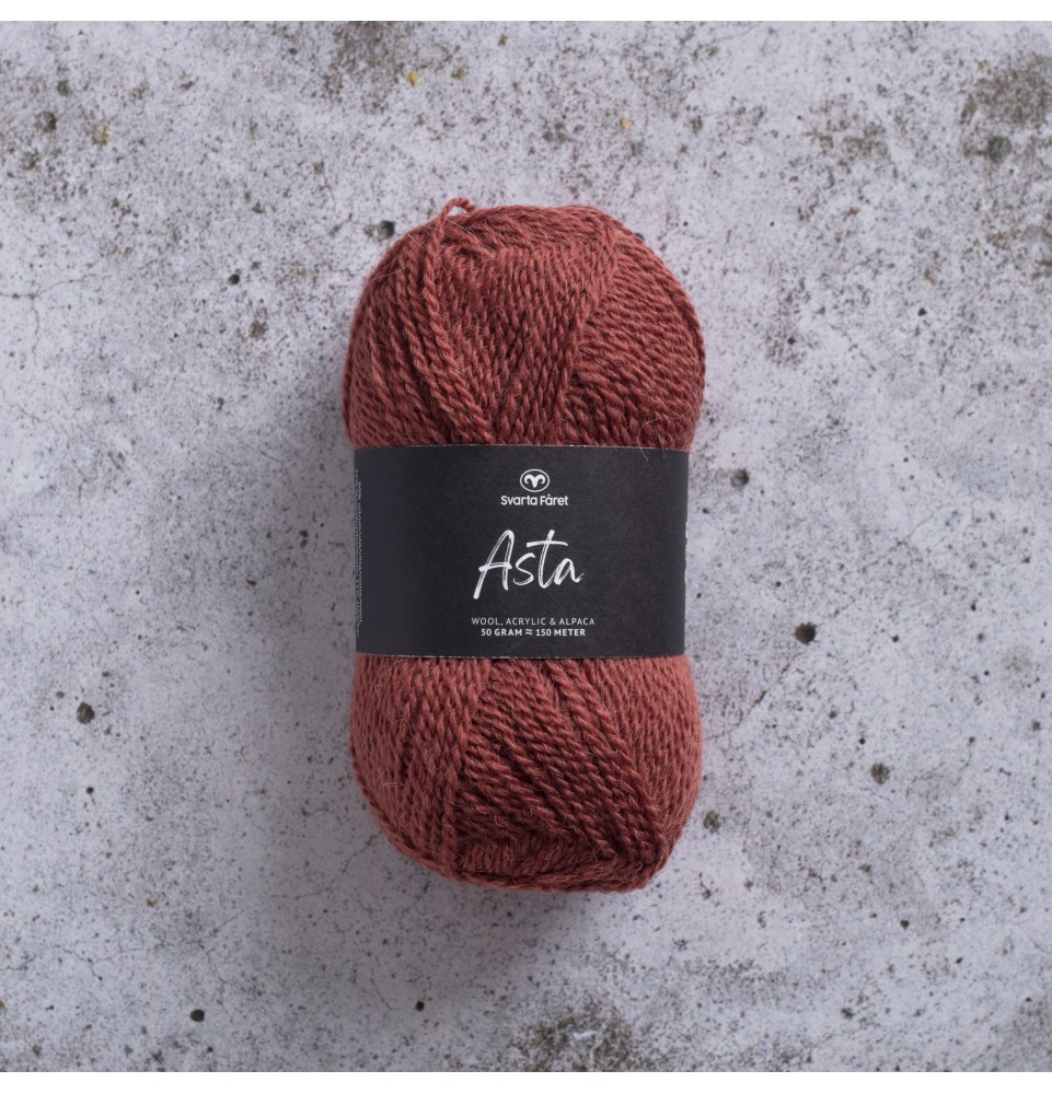 Asta kommer i en ljuvlig blandning av 15% alpacka, 50% ull och 35% akryl. Garnet passar perfekt till värmande accessoarer som sjalar och ponchos, men även koftor och tröjor blir mjuka och sköna i Asta. Garnet är upplagt på 50 grams nystan om 150 meter, och stickfastheten 24 maskor på stickor nr 3.5 ger 10 cm. Plagg som stickas med Asta tvättas i 30 graders skontvätt. Med flera ljuvliga färger att välja bland kan vi nästan lova att du mött en framtida favorit.