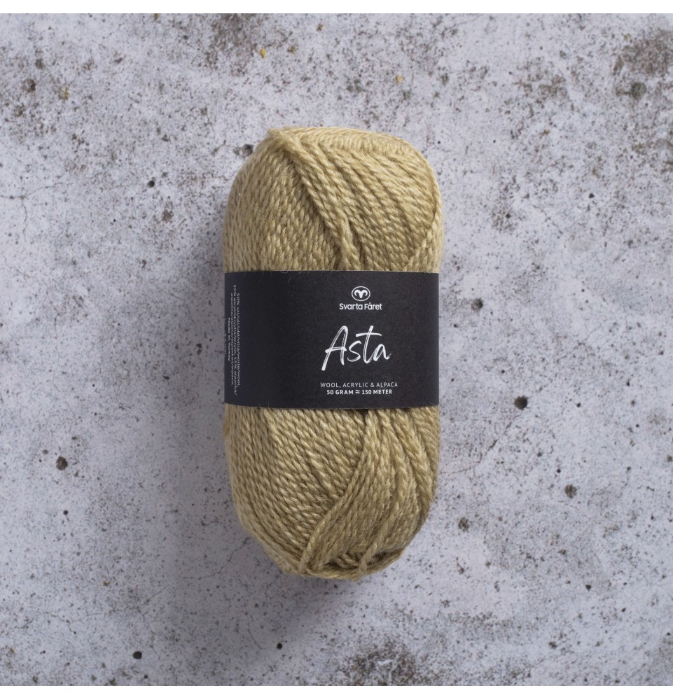 Asta kommer i en ljuvlig blandning av 15% alpacka, 50% ull och 35% akryl. Garnet passar perfekt till värmande accessoarer som sjalar och ponchos, men även koftor och tröjor blir mjuka och sköna i Asta. Garnet är upplagt på 50 grams nystan om 150 meter, och stickfastheten 24 maskor på stickor nr 3.5 ger 10 cm. Plagg som stickas med Asta tvättas i 30 graders skontvätt. Med flera ljuvliga färger att välja bland kan vi nästan lova att du mött en framtida favorit.