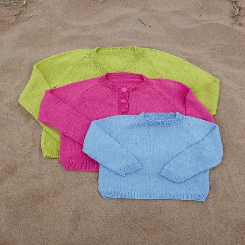 Basmönster till tröja och kofta med raglanärm 2-12 år och dam, herr, pdf