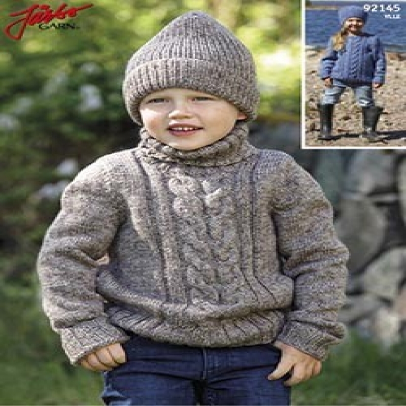 Barntröja med flätor & polo eller rund krage i Ylle, pdf