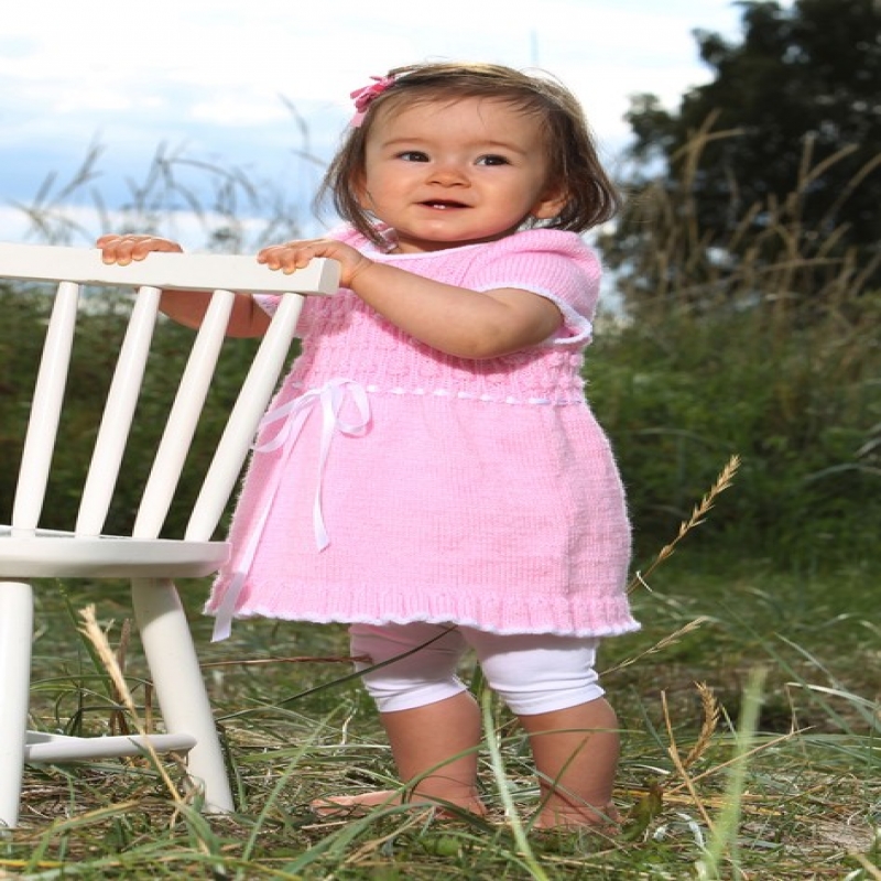 Beskrivning till klänning, mössa och tröja i Svarta fårets, Baby