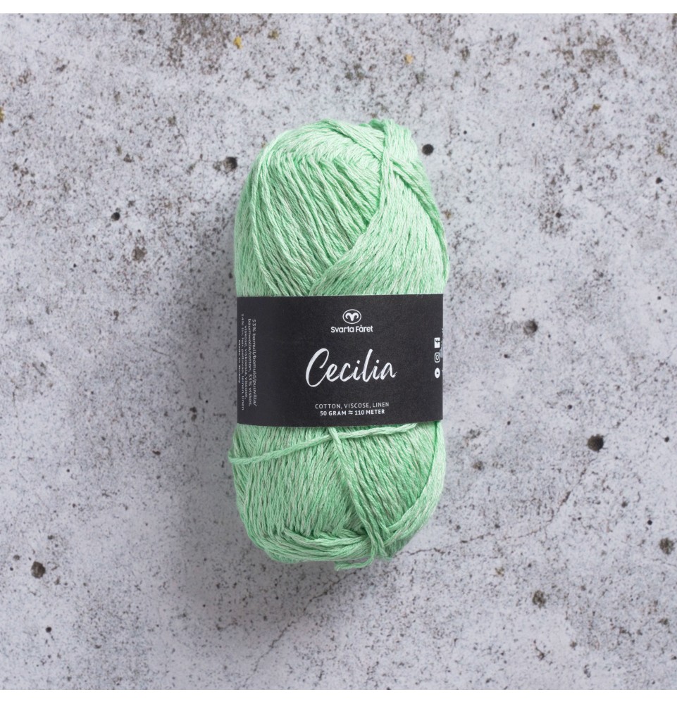 Cecilia kommer i en härlig blandning av 53% bomull, 33% viskos och 14% lin. Garnet har en vacker struktur och passar perfekt till lätta och luftiga plagg för våren och sommaren. Garnet är upplagt på 50 grams nystan om 110 meter, och stickfastheten 21 maskor på stickor nr 4 ger 10 cm. Plagg som stickas med Cecilia tvättas i 30 graders maskintvätt. Med närmare 30 färger att välja bland är det bara kreativiteten som sätter gränser för vad du kan skapa med detta garn.