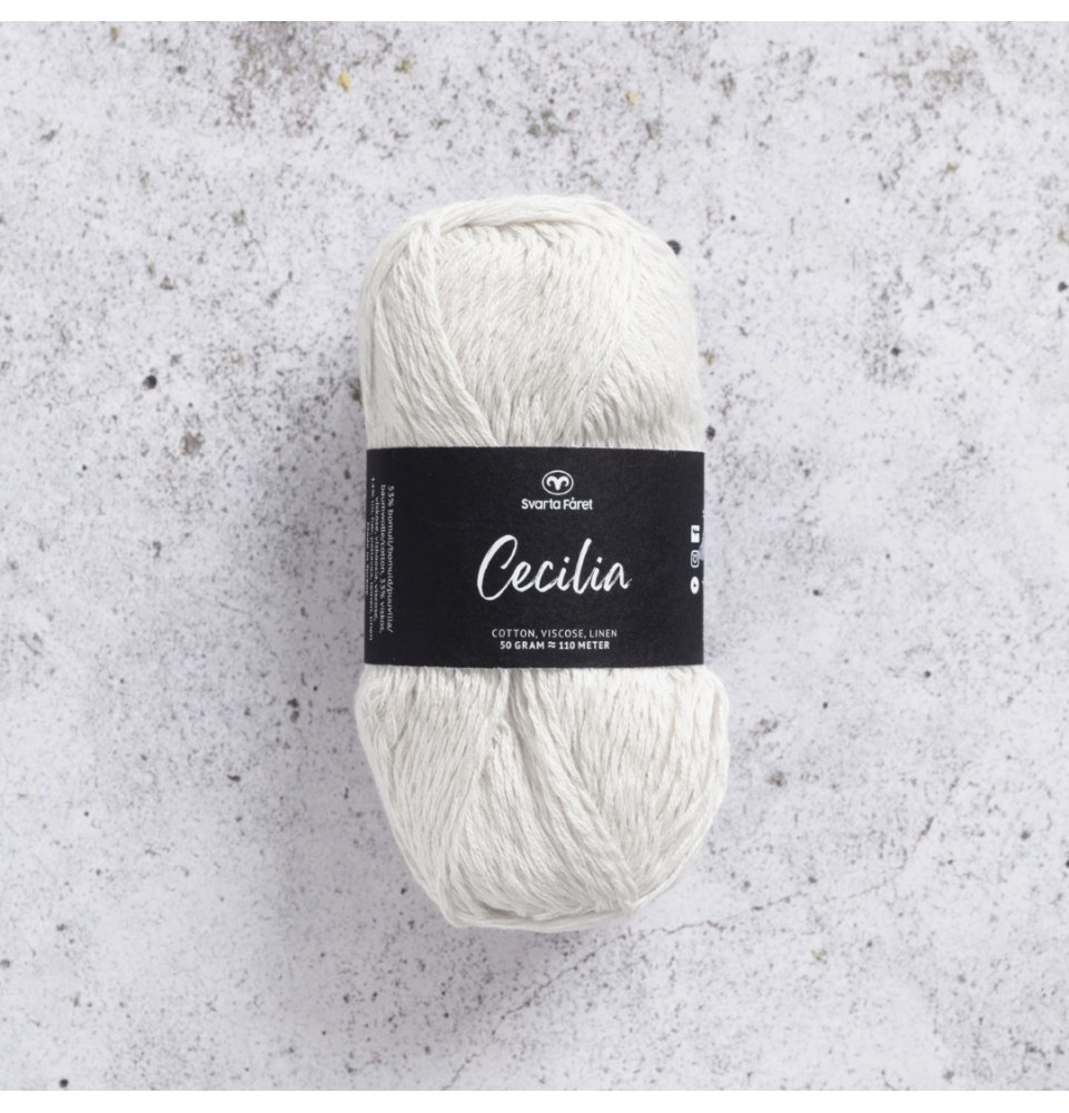 Cecilia kommer i en härlig blandning av 53% bomull, 33% viskos och 14% lin. Garnet har en vacker struktur och passar perfekt till lätta och luftiga plagg för våren och sommaren. Garnet är upplagt på 50 grams nystan om 110 meter, och stickfastheten 21 maskor på stickor nr 4 ger 10 cm. Plagg som stickas med Cecilia tvättas i 30 graders maskintvätt. Med närmare 30 färger att välja bland är det bara kreativiteten som sätter gränser för vad du kan skapa med detta garn.