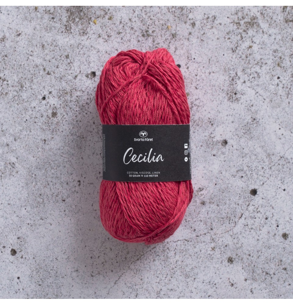 Cecilia kommer i en härlig blandning av 53% bomull, 33% viskos och 14% lin. Garnet har en vacker struktur och passar perfekt till lätta och luftiga plagg för våren och sommaren. Garnet är upplagt på 50 grams nystan om 110 meter, och stickfastheten 21 maskor på stickor nr 4 ger 10 cm. Plagg som stickas med Cecilia tvättas i 30 graders maskintvätt. Med närmare 30 färger att välja bland är det bara kreativiteten som sätter gränser för vad du kan skapa med detta garn.