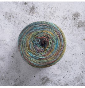 En ”kaka” räcker både till en hel sjal eller poncho, och de härliga printfärgerna skapar en vacker effekt – utan att du behöver byta nystan en enda gång!