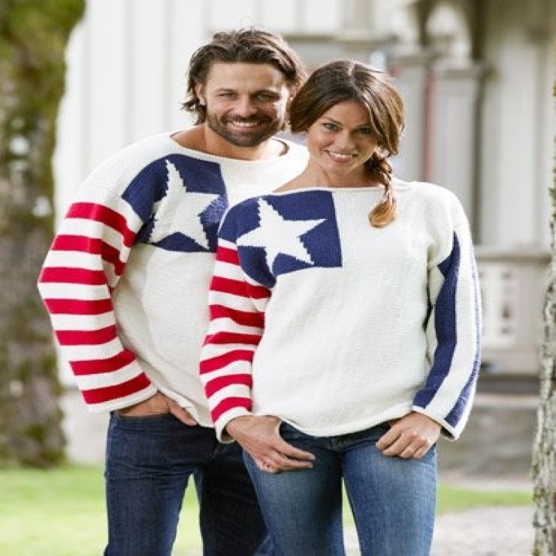 Tröjorna är stickade i M&K Victoria, 100% Bomull