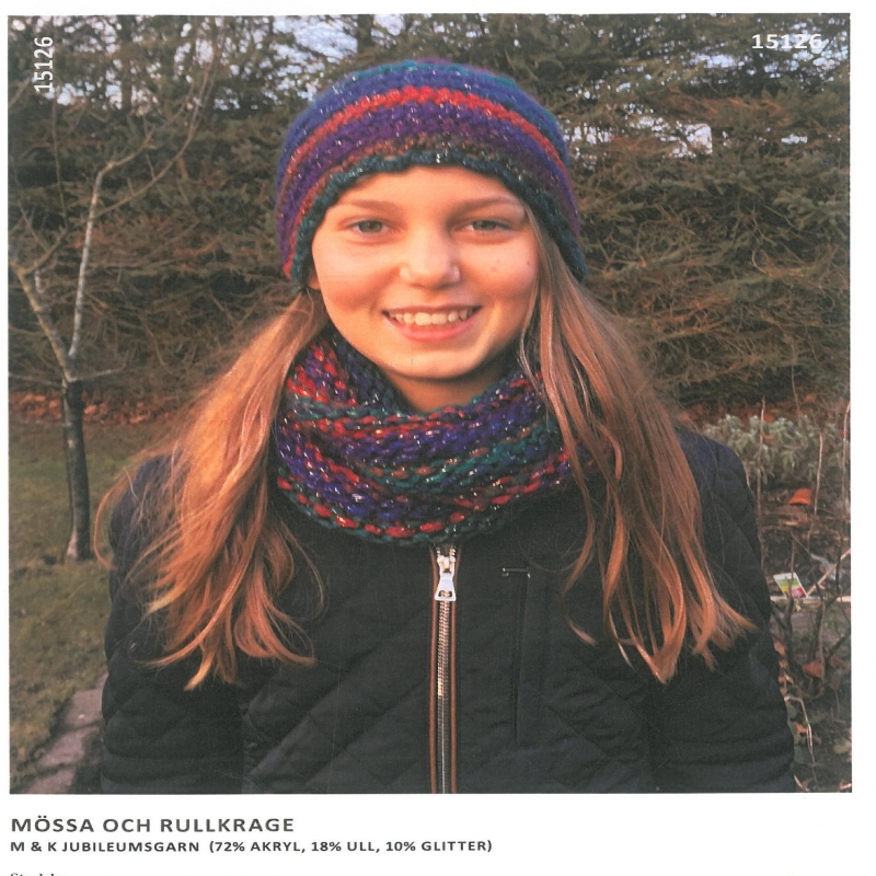 M & K jubileumsgarn 72 % akryl, 18 % ull, 10 % glitter