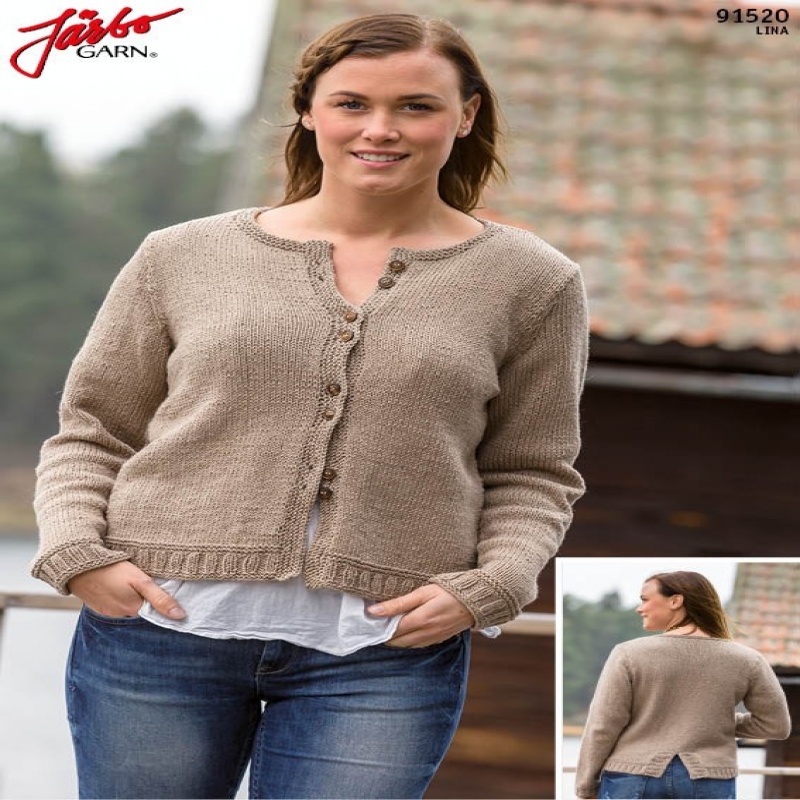 STORLEKAR-DAM XS(S)M(L)XL(2XL) STORLEKAR-EUR 32/34(36/38)40/42(44/46)48/50(52/54) ÖVERVIDD Ca 82(90)98(107)119(130) cm HEL LÄNGD Ca 54(56)58(60)62(64) cm GARNÅTGÅNG Ca 500(550)550(600)650(700) g (fg 16204) STICKOR Nr 4 och 4.5 TILLBEHÖR 8 st knappar
