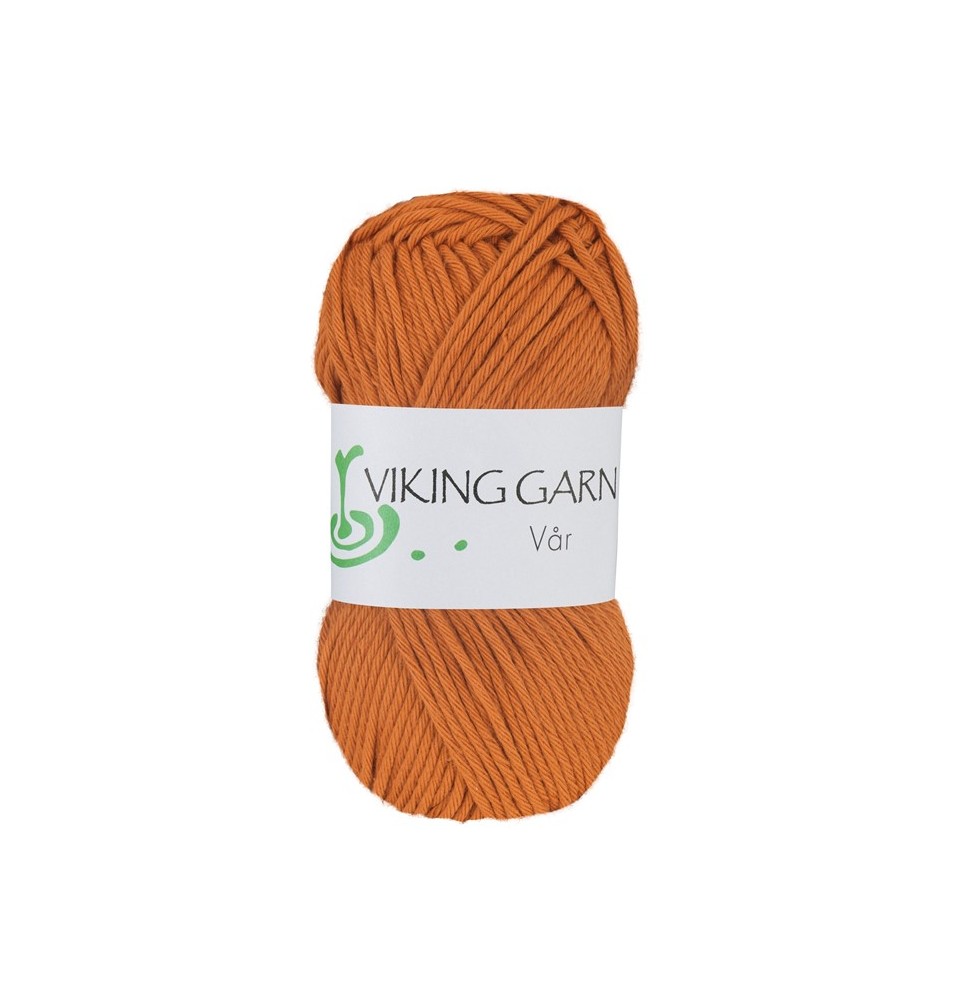 Vår består av 100 % bomull. Det är ett garn för alla årstider som är mycket mjukt och behagligt att sticka med. Garnet passar lika bra till plagg som inredning eller disktrasor.