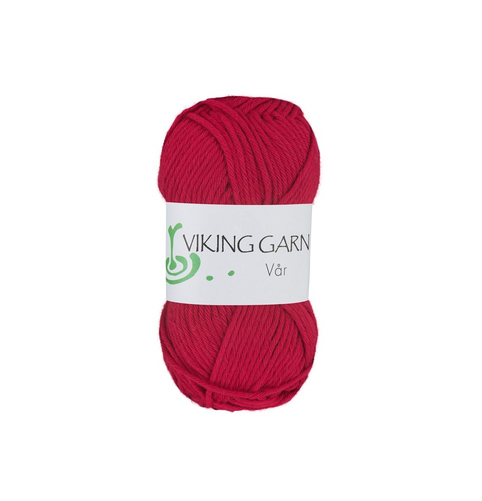 Vår består av 100 % bomull. Det är ett garn för alla årstider som är mycket mjukt och behagligt att sticka med. Garnet passar lika bra till plagg som inredning eller disktrasor.