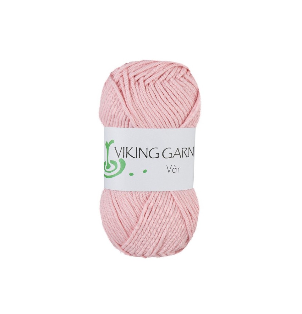 Vår består av 100 % bomull. Det är ett garn för alla årstider som är mycket mjukt och behagligt att sticka med. Garnet passar lika bra till plagg som inredning eller disktrasor.