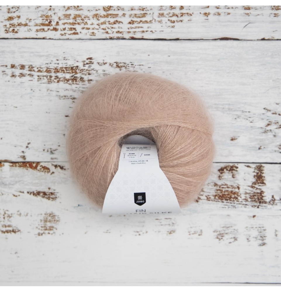 Lyxig silke-mohair-mix med fluffig aura och vacker glans. Detta högkvalitativa mohairgarn kan stickas somföljegarn tillsammans med ett ullgarn eller med endast en eller flera trådar Fin Mohair Silke för fjäderlätta plagg.Färgerna är dämpade, pudriga och helt perfekta för att uppfylla dina mohairdrömmar.