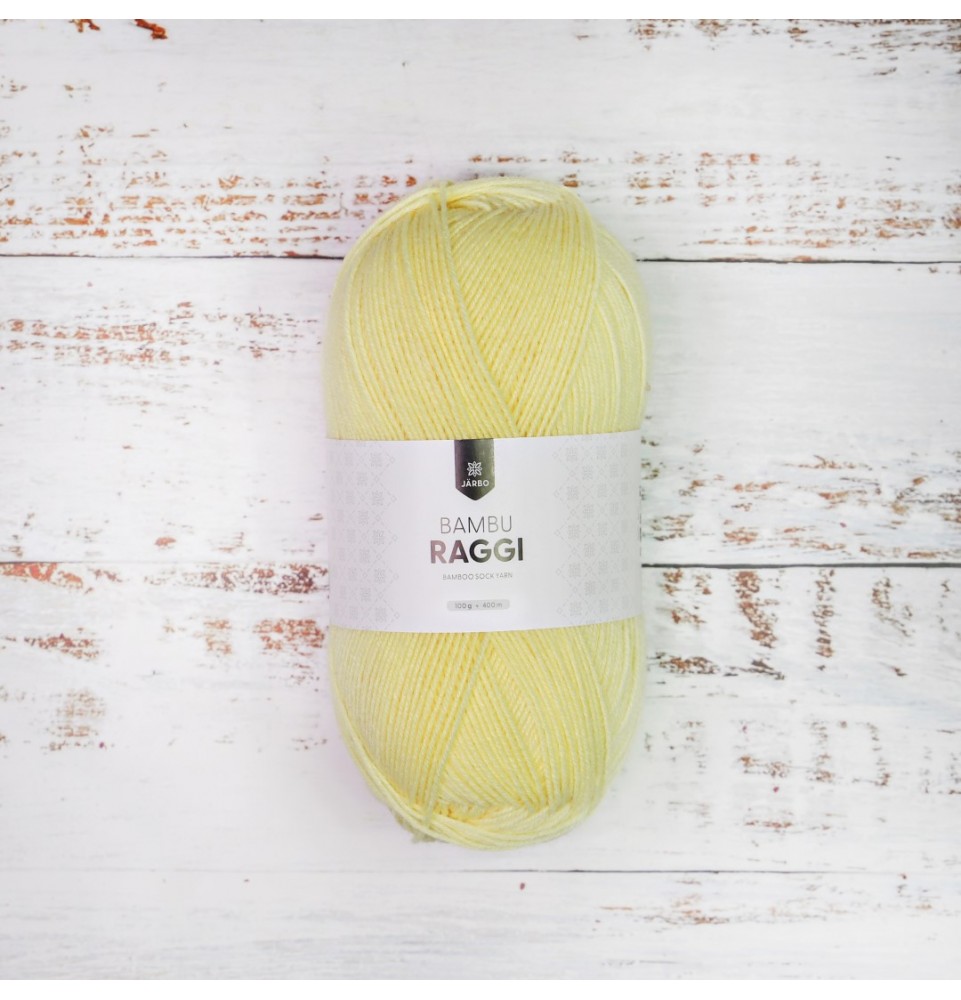 50 % ull, 25 % polyamid, 25 % bambu, 100 g = 400 m, 27-28 m/40 v på stickor 2,5-3,0 mm