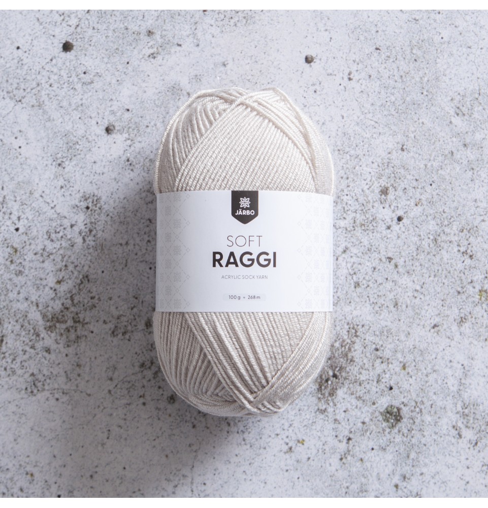 Soft Raggi är en ny typ av sockgarn med unika egenskaper. Den speciella kompositionen av bambu, premium Micro Akryl och elastan ger garnet en skön känsla och spänst. Dessutom blir det väldigt mjukt och passar dig som är vegan då det är helt fritt från animaliska fibrer. Supermjukt veganskt sockgarn