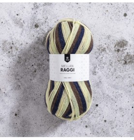 Raggi är sockgarnernas urfader och Järbos stolthet. Mellanraggi är ”mellanbarnet” i Raggi-familjen! Precis som i den tjockare Raggi innehåller Mellanraggi en mix av superwashbehandlad ull och polyamid gör garnet slitstarkt och tåligt. Därför passar det särskilt bra till sockor. Raggifamiljen består av ett helt gäng garner, alla särskilt framtagna för att passa till sockstickning men även andra typer av plagg.
