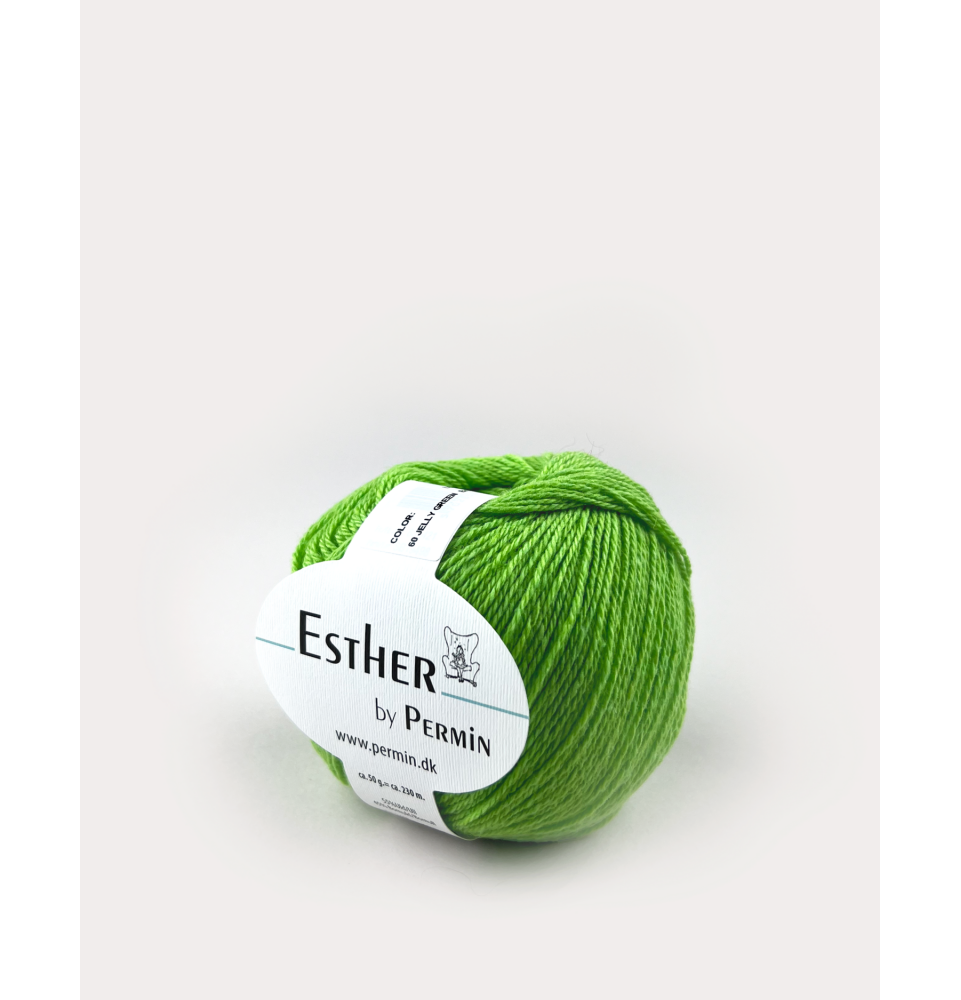 Esther by Permin är ett av våra mest mångsidiga garn pga dess klassiska sammansättning och budgetvänliga pris. Garnet passar till nästan alla stickade plagg eftersom det är lätt och repfritt och fungerar även bra som uppföljning med exempelvis Angel by Permin eller Bella by Permin, samt för fair isle pattern knitwear, baby knitwear och herrstickat.