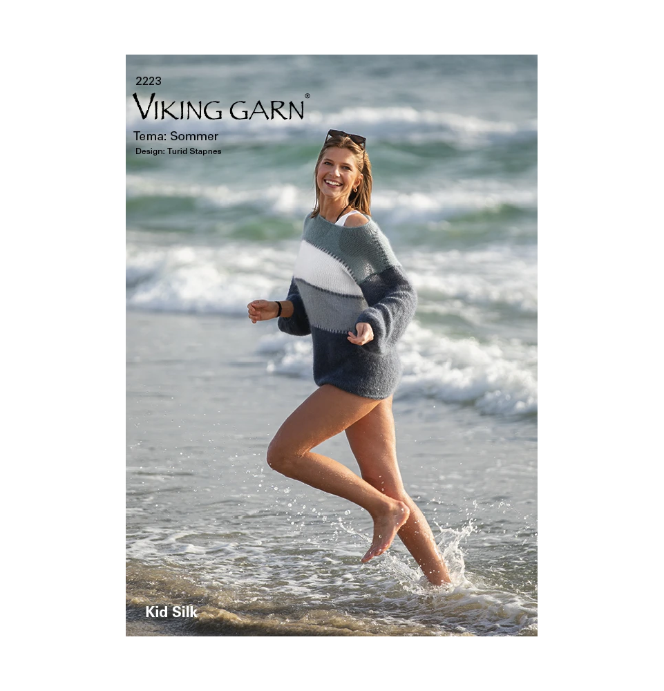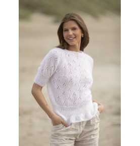 GARN: Kid Silk (77% Kid Mohair, 23 % silke), nystan à 25 g. Vit nr 300: 6 - 6 - 7 - 7 - 8 - 9 nystan