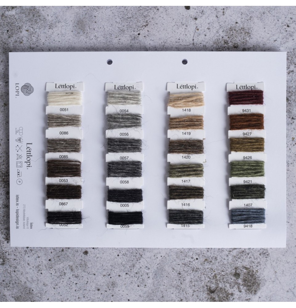 Utforska en värld av färger med Istex's färgkarta över Lettlopi! Denna karta innehåller alla 50 fantastiska färger som Lettlopi-garnet erbjuder - från mjuka pasteller till djärva och livfulla nyanser. Lettlopi är ett 100% isländskt ullgarn med en unik textur och tjocklek som gör det perfekt för att skapa varma och hållbara stickade plagg. Ullen kommer från isländska får, som har utvecklat en unik kvalitet genom århundraden av anpassning till Islands tuffa klimat. Med en färgkarta över Lettlopi kan du planera dina stickningsprojekt med lätthet och hitta den perfekta färgkombinationen för dina drömprojekt. Så beställ din färgkarta idag och låt ditt nästa stickningsprojekt bli en färgsprakande succé