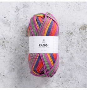 Raggi är sockgarnernas urfader och Järbos stolthet, spunnet första gången på spinneriet i Järbo. Blandningen av superwashbehandlad ull och polyamid gör garnet slitstarkt och tåligt. Därför passar det särskilt bra till sockor. Raggi är också härligt värmande till vintertröjor, mössor, vantar och halsdukar. Ett klassiskt raggsocksgarn, helt enkelt.