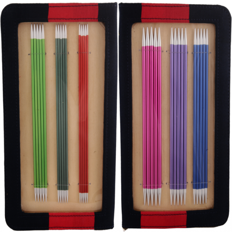 Färgglada metallstickor från Knit Pro där alla storlekar har sin egen färg.