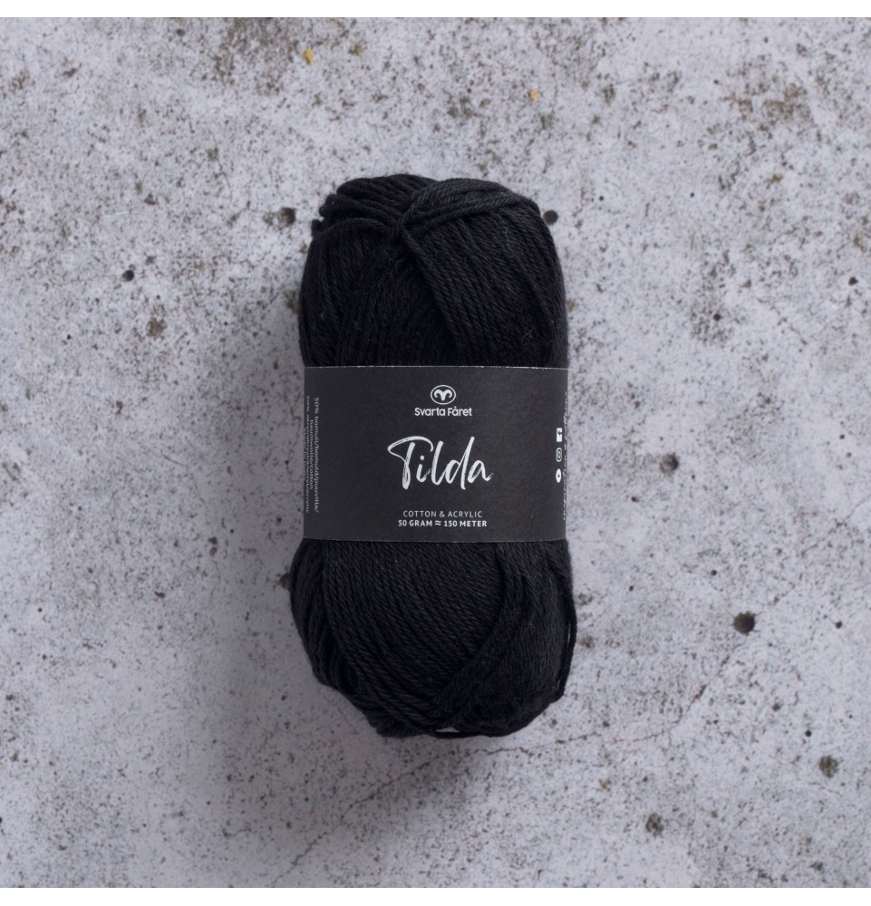 Svarta Fårets Tilda har du alldeles säkert hört talas om! Tilda är ett härligt blandgarn av 50 procent bomull och 50 procent akryl. Detta omtyckta garn är både mjukt och slitstarkt, och passar lika bra till stickning som virkning – både för plagg och interiör. Med över 60 färger att välja bland är det bara fantasin som sätter gränser för vad du kan skapa med detta älskade garn.