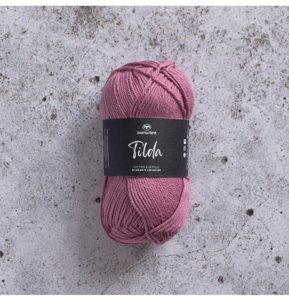 Svarta Fårets Tilda har du alldeles säkert hört talas om! Tilda är ett härligt blandgarn av 50 procent bomull och 50 procent akryl. Detta omtyckta garn är både mjukt och slitstarkt, och passar lika bra till stickning som virkning – både för plagg och interiör. Med över 60 färger att välja bland är det bara fantasin som sätter gränser för vad du kan skapa med detta älskade garn.