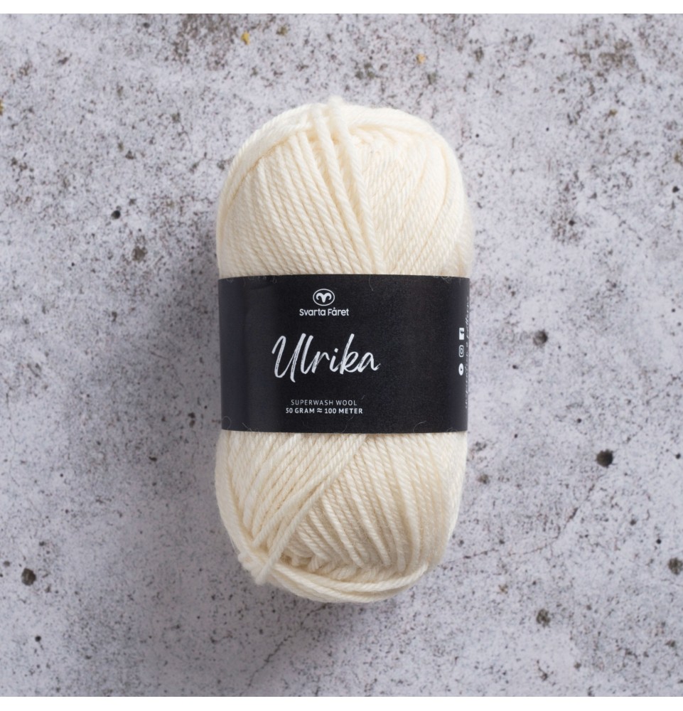Vårt älskade Ulrika är ett klassiskt ullgarn av 100% superwashbehandlad ull. Detta omtyckta garn är både mjukt och värmande, och passar lika bra till plagg för vuxna som för barn. Ulrika är upplagt på 50 grams nystan om 100 meter, och stickfastheten 20 maskor på stickor nr 4 ger 10 cm. Plagg som stickas med Ulrika tvättas i 30 graders maskintvätt. Med över 40 färger att välja bland är det bara fantasin som sätter gränser för vad du kan skapa med detta älskade garn.